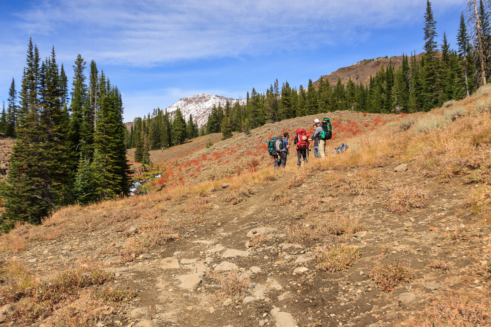 The Tenderfoot trailhead lies at the end of a short rough road along the eastern side of the mountains. At 6500 feet, it’s one of the higher access points to the wilderness area. It’s a 5.5 mile hike to Dollar Lake with a continuous, but gentle climb of 2000 feet. This even grade makes for a nice easy hike. From the beginning, the terrain is gorgeous, but very different from the central valleys that we are used to. For one, the valley is not as deep as the Wallowa, Hurricane, or Lostine valleys, and the mountains are concocted of layers of basalt and shale rather than granite. This difference in underlying terrain meant the floral community was different as well. We passed by some sagebrush communities and aspen groves in the first section of the hike.