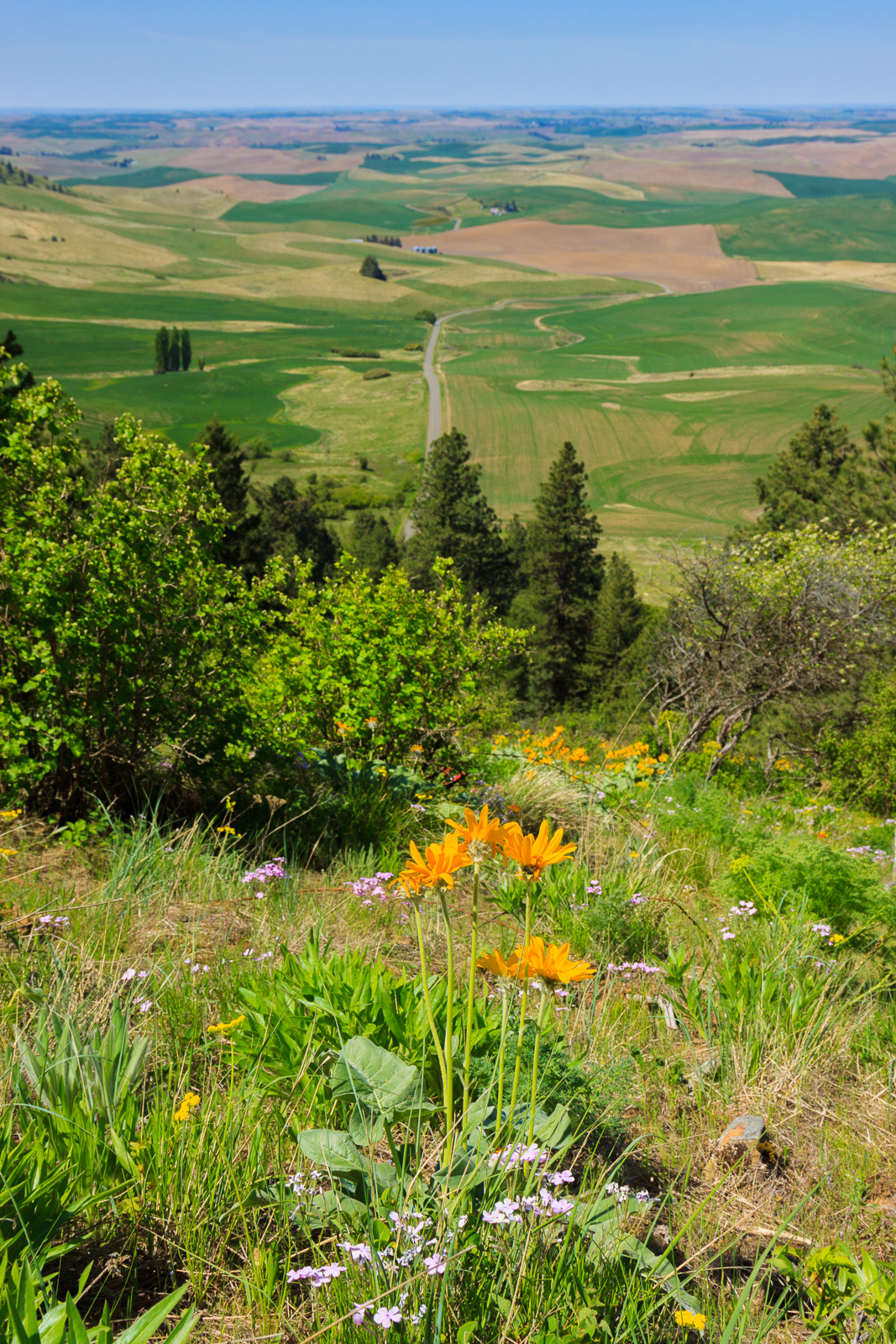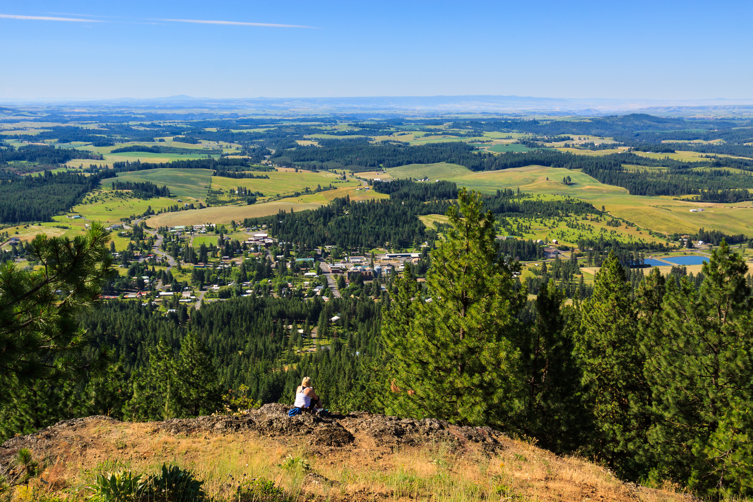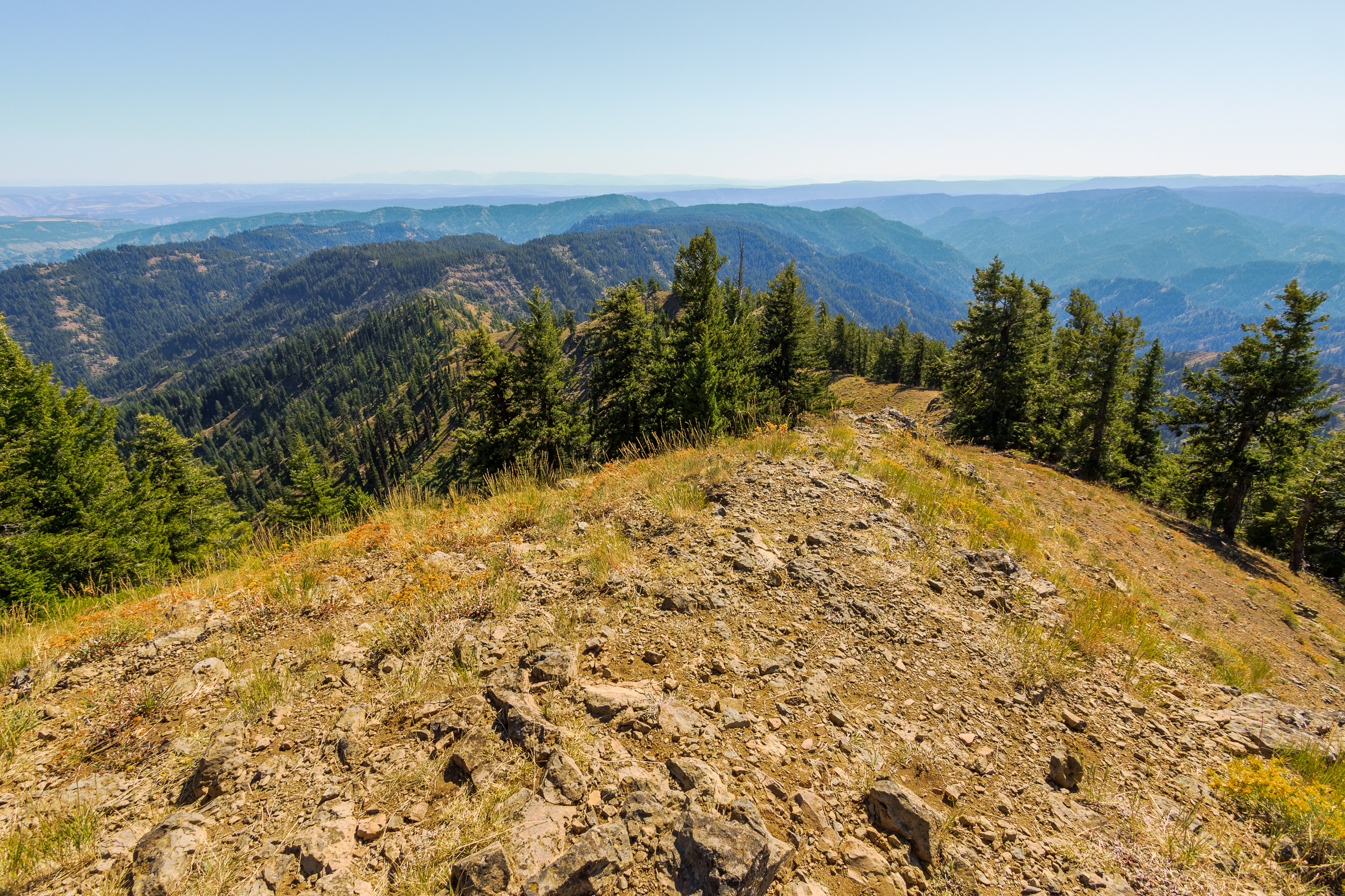 In total, the view from the rocks is around 180º from Freezeout to Pullman, including the ability to see the Mallard Larkins, Selway Crags, Gospel Hump, Seven Devils, Wallowas, Selway/Payette Mountains, the Blue Mountains, a bit of Hells Canyon, and all of the hills of the southern Palouse.