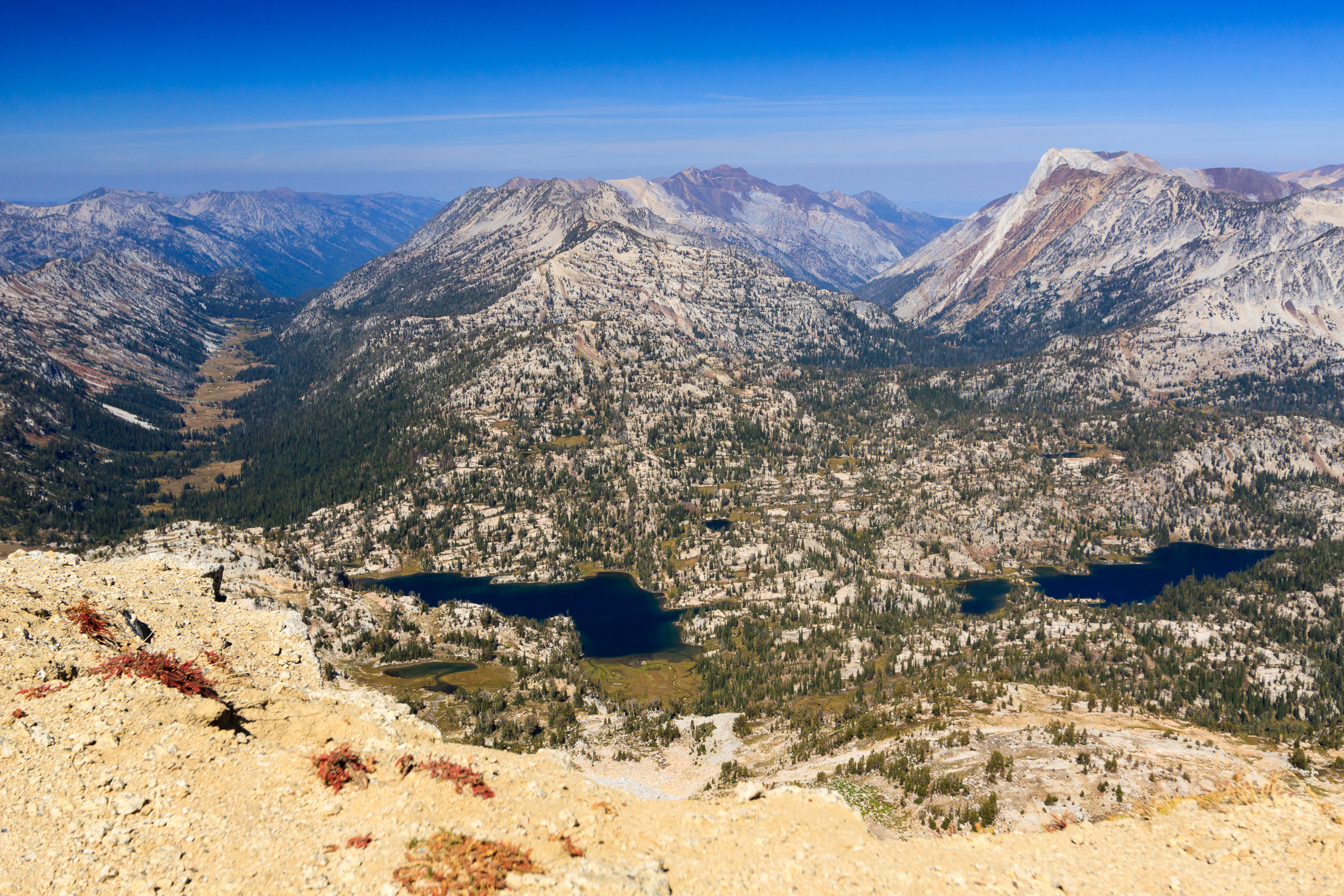 View of the lakes district from the summit of Eagle Cap. Mirror Lake is front and center.