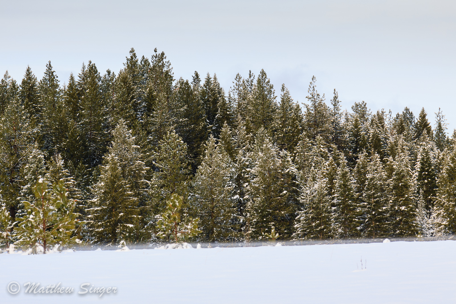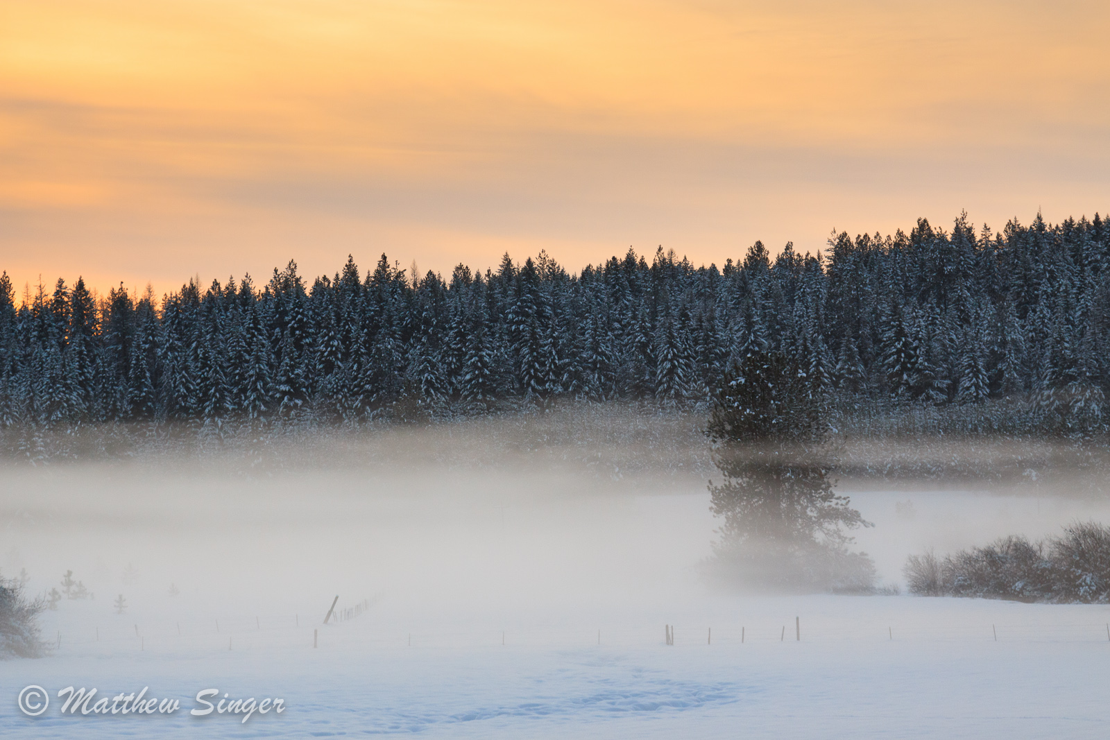 The mist on the snow had accumulated at the bottom of our neighbor’s field.
