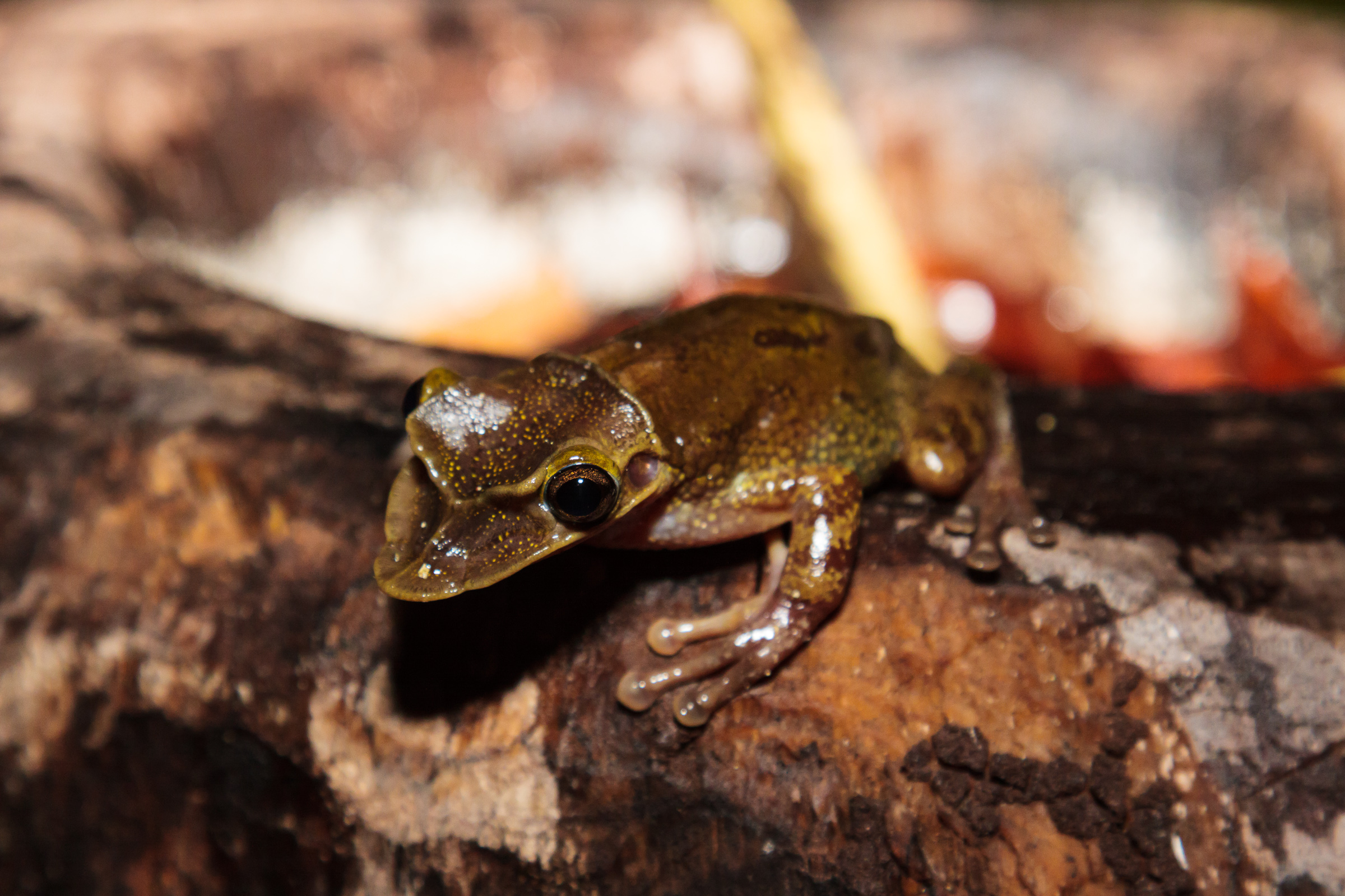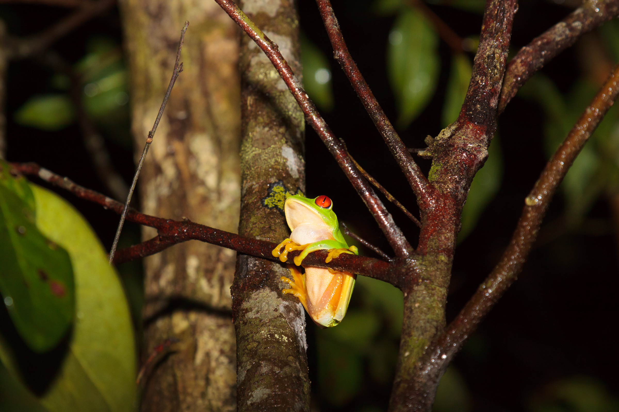 My sister’s wedding was at a place farther inland in the middle of the jungle. The rain did help cool things down, but the humidity was still a pain to deal with, especially inside. So, I had to step outside often to get some fresh air. The rain does have a positive effect of bringing out frogs. In fact, I managed to find three species of tree frog, and heard several more. These guys are so cool.