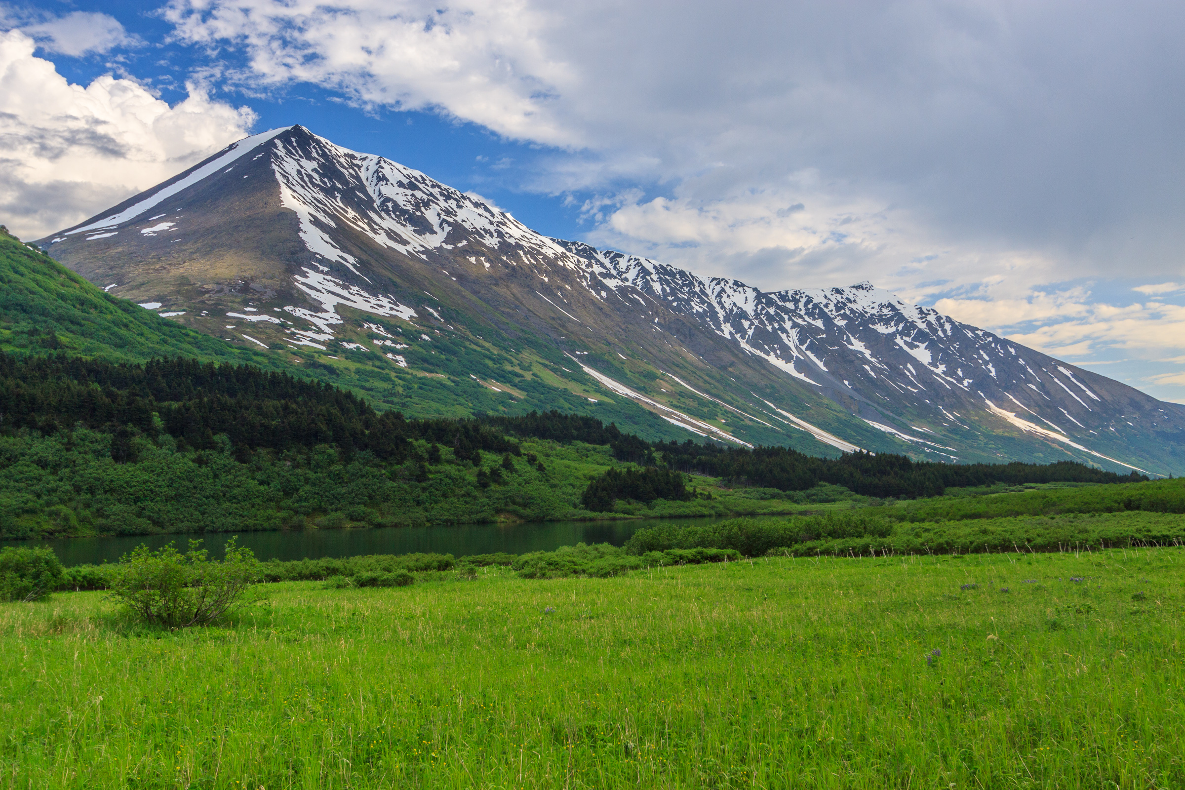 Unfortunately because of the conference, I was not able to really explore the city much. I spent my time out at the University of Alaska at Anchorage, which is on the outskirts of town. There are a few lakes and some trails near campus that I did get to explore. I came across 3 moose – a mom and two calves – just outside of the dorm I was staying in. Of course I saw them when I didn’t have my camera, and didn’t see another moose the rest of the trip. But I did get my moose sighting. After the Conference, I rented a car to drive down to Seward. On my way down, I did get to stop along the coastal trail where I snapped the photo above. All through the conference, we had great weather conditions. It was cool and cloudy the first couple days, and then the sun came out and it was warm. By Monday the 15th, it was almost unbearably warm and humid compared to Idaho. But the biggest disappointment was that I woke up to a very hazy view of the mountains. A large fire had broken out in Denali National Park and the smoke had made its way south to cover most of southeastern Alaska. So much for super clear days, but I made the best of it. It was still clear enough to make out the white peaks of Denali and the Alaska Range from the coastal trail.