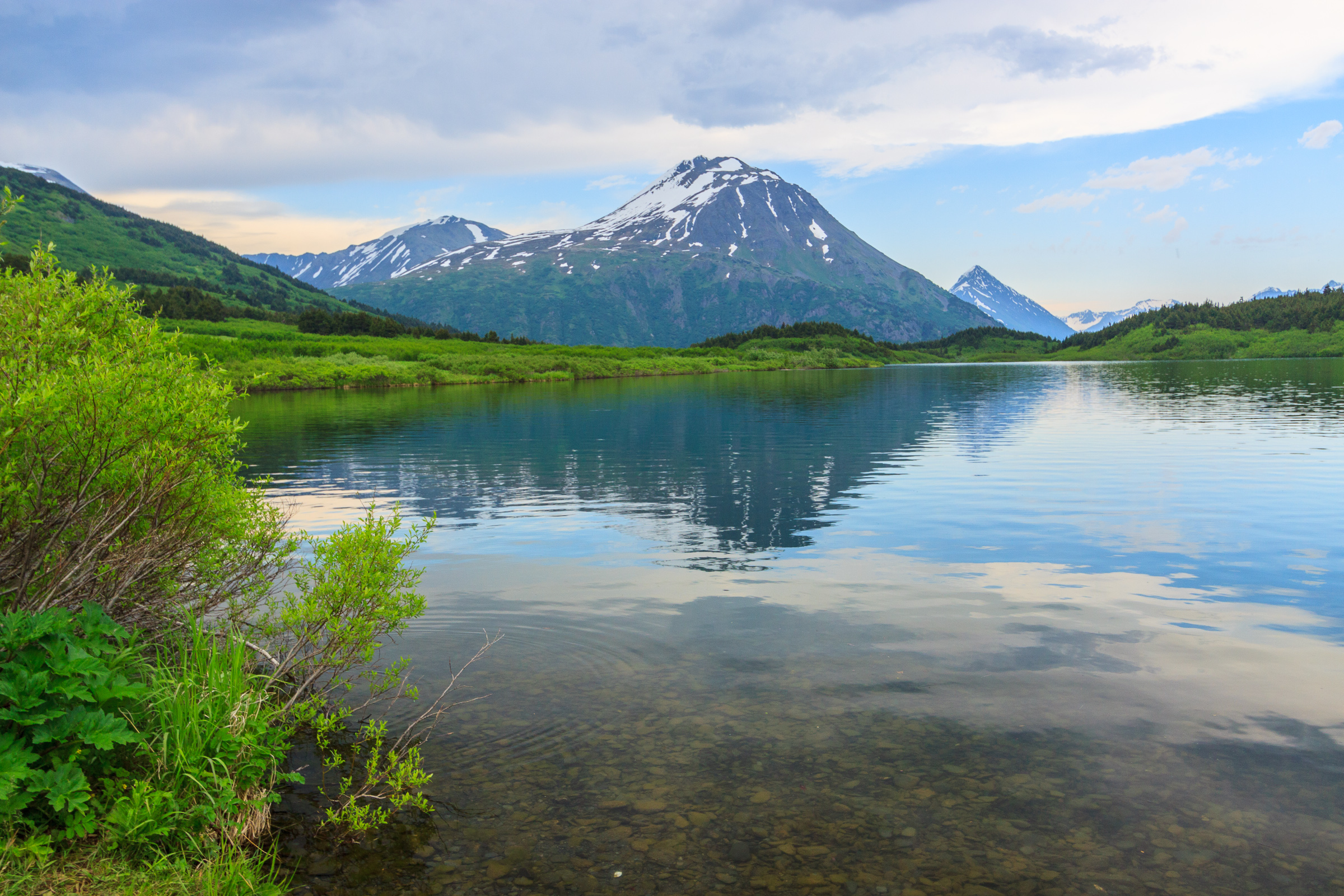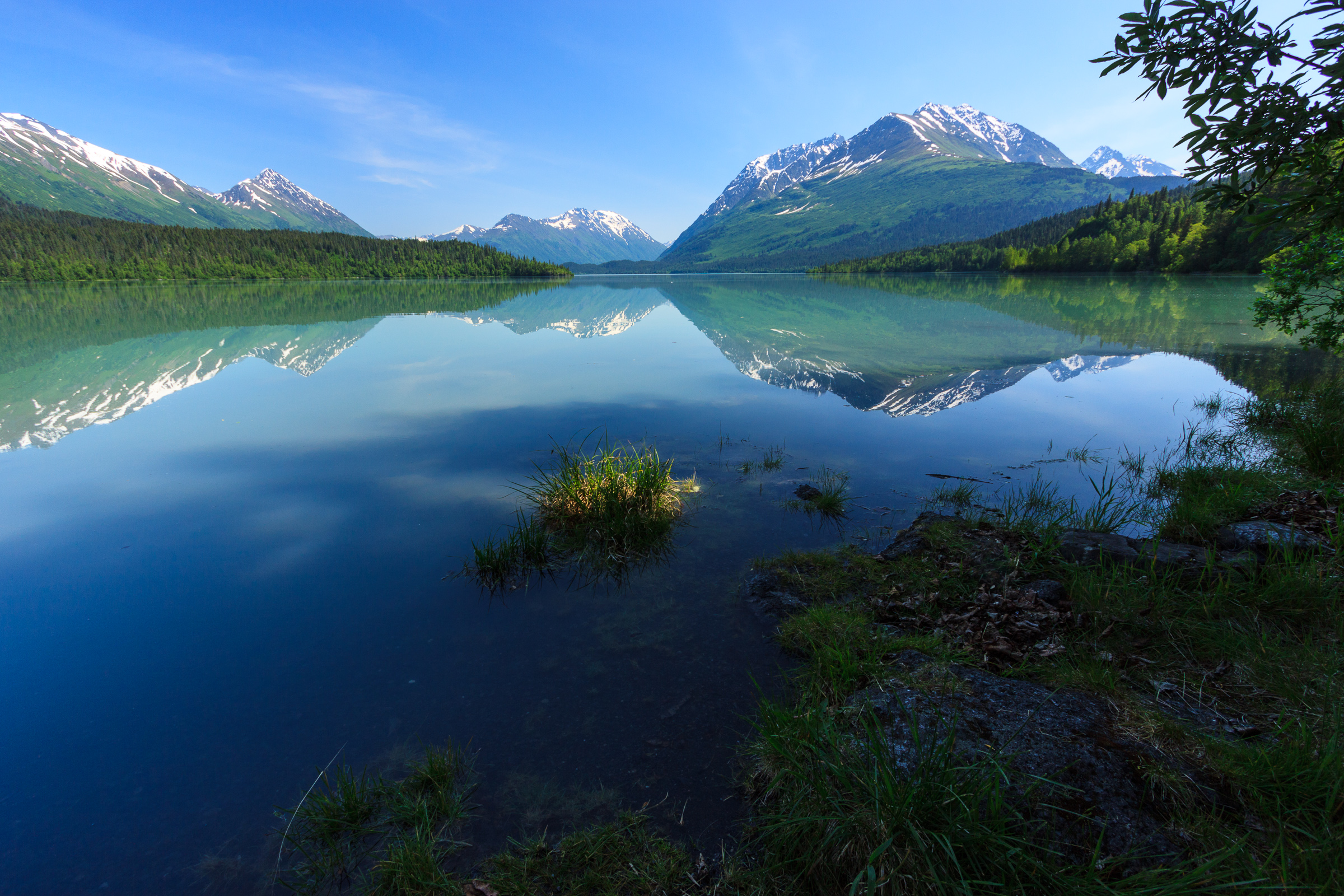 The highway travels along several lakes outside of Seward. The next was Upper and Lower Trail Lakes. I enjoyed the view as I drove by, but made no plans to stop until I noticed the reflections in the water. I immediately turned around and pulled into a little picnic area along the shore of Upper Trail Lake. This is the only lake I came across with a glassy mirror surface. The reflections were perfect and the scene was iconic Alaska. I got my shots, grabbed a geocache that was hidden there, and moved along.