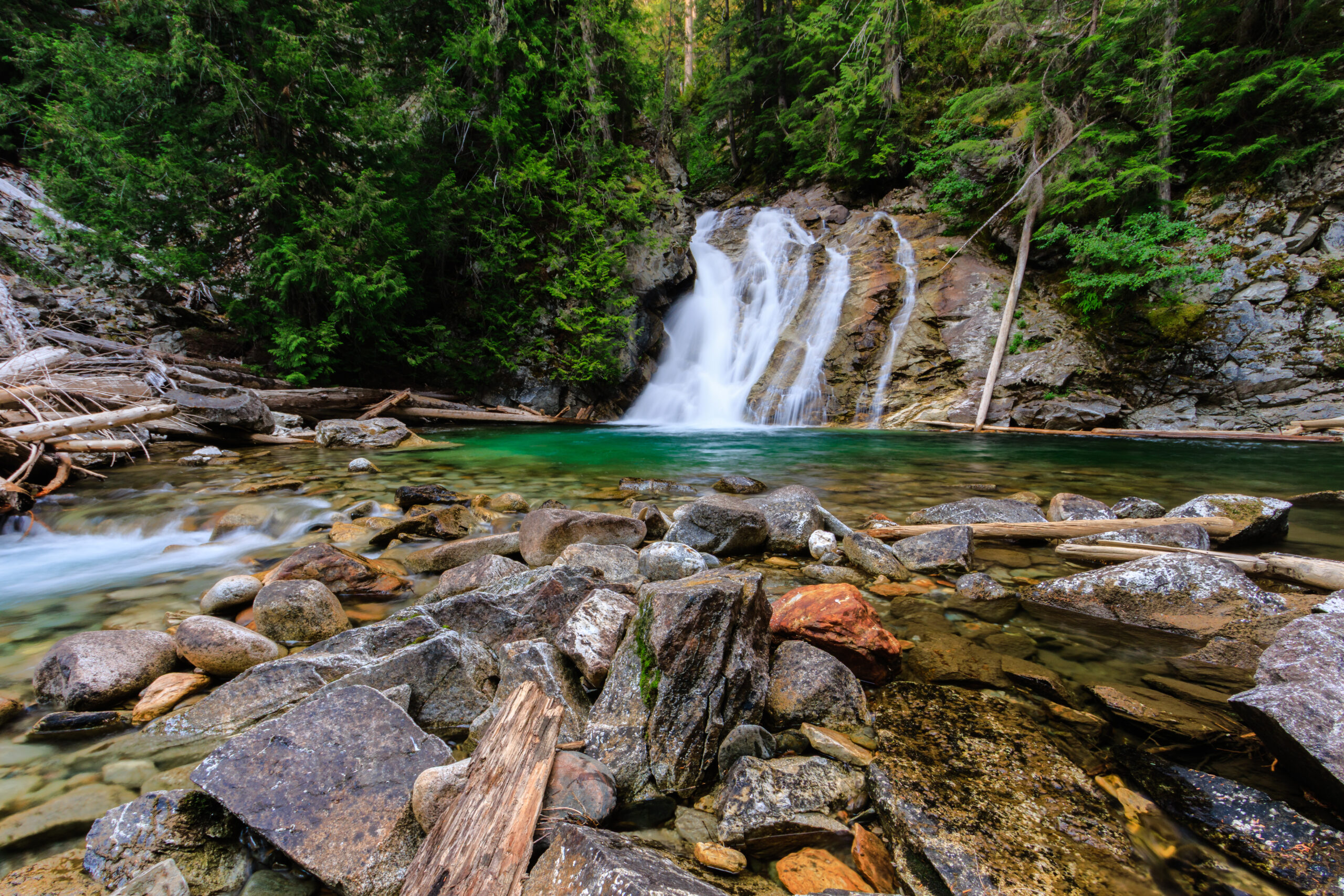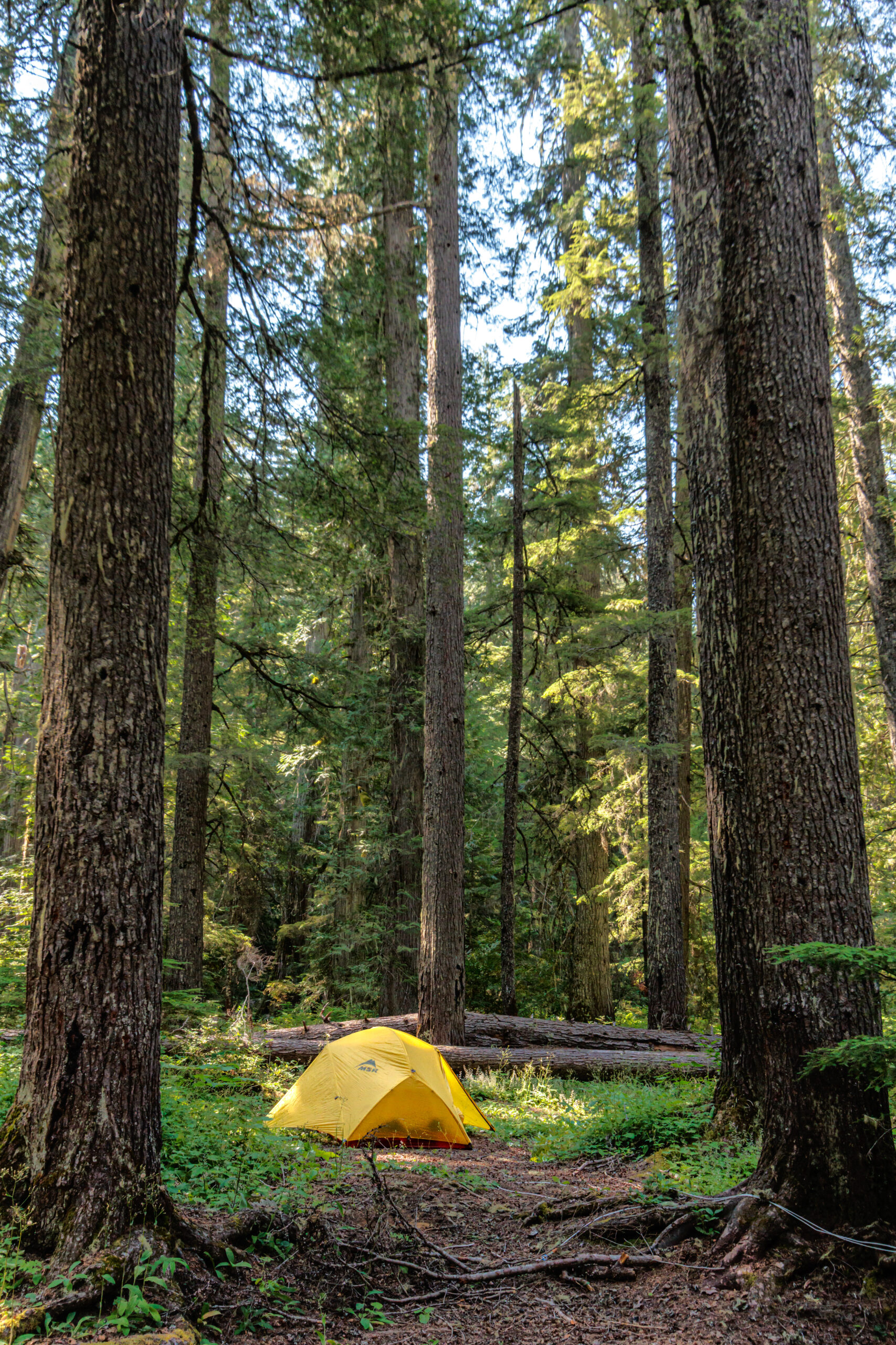 There are several places to camp. The first campsite is about 1 mile from the trailhead, and another maybe a mile past that. Then it’s quiet for a while, meandering through the tall trees until eventually the trail reaches Malcom Creek. Here, a shorter trail descends down the mountain and meets up with the Upper Priest River Trail. There is a nice spacious campsite, which is where we decided to stop for the night as the next campsite just over the bridge was taken by another group. About 3/4 of a mile later, the trail ends at Centennial Falls, with another set of campsites.