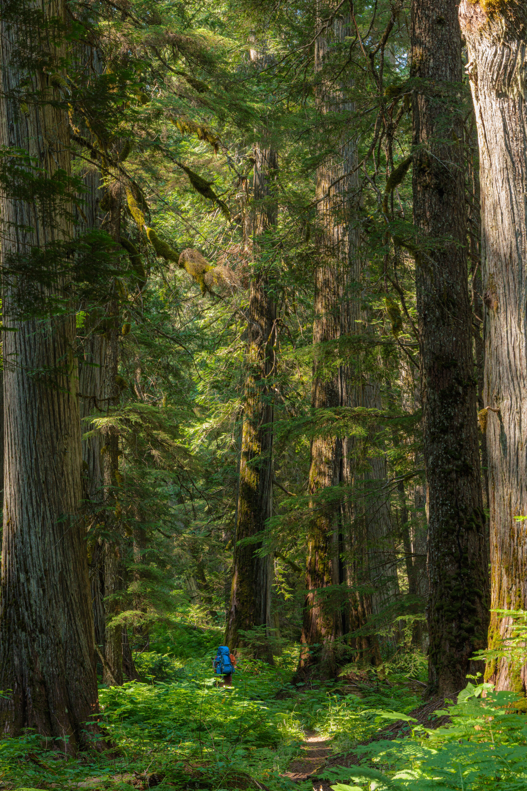 Much of the hike travels through old growth forest with giant cedars, Douglas firs, and western hemlock. It’s a welcome sight for a patch of forest that isn’t protected by the 1964 Wilderness Act. What makes this hike special is that it’s not just a small patch of forest. The majority of the 8-mile hike is in this old-growth habitat, including the camping areas at the end. It truly is a special place. We happened to time this hike with the huckleberries. They were everywhere, and provided a snack along the trail and a delicious addition to breakfast.
