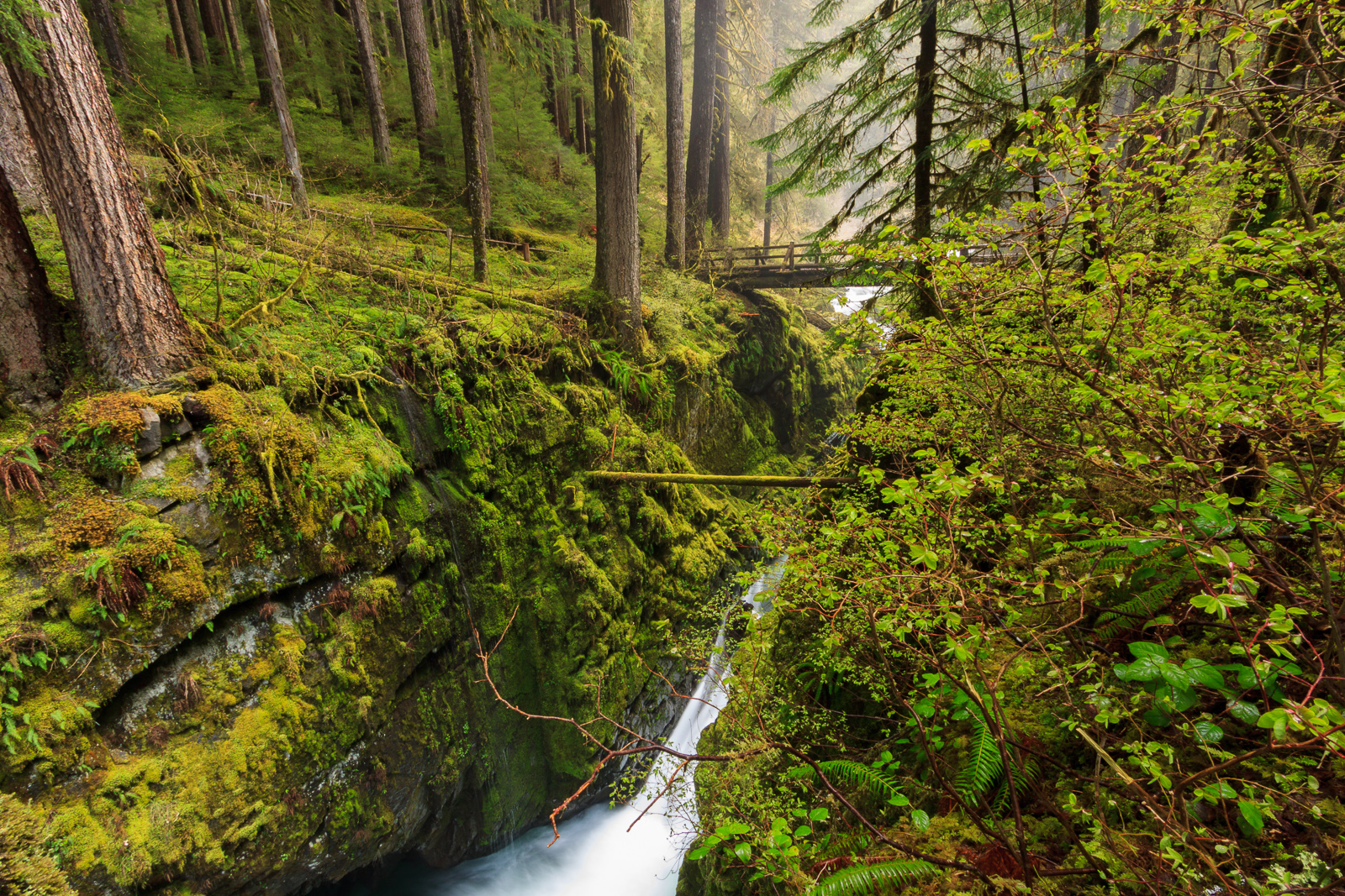 It hadn’t rained overnight or the previous evening, but everything was wet and damp in the morning. The sky was overcast, and that had me excited for appropriate light conditions for photographing waterfalls. Our destination for the day was the Hoh Rainforest, but since Sol Duc Falls was less than a mile’s hike in, I convinced everyone that we should make the hike before heading out.