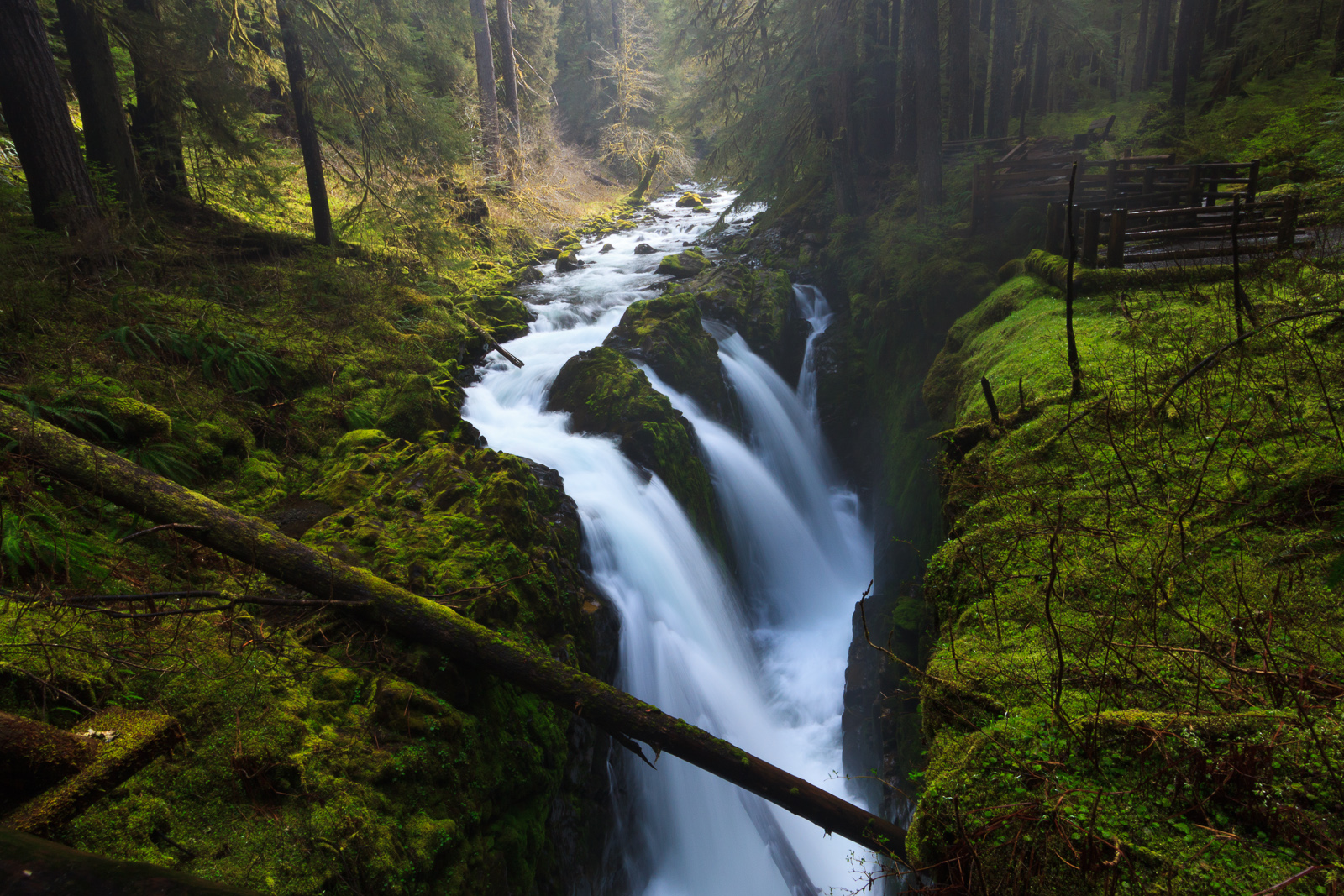 The forest at Sol Duc is absolutely gorgeous. The trees are all 150-200 feet tall, and many are enormous in girth. Every log and rock is covered in a layer of moss. Small creeks tumble down from the side. And then you get to the waterfall. Sol Duc Falls drops 48 feet into a narrow gorge. The interesting part is that these falls enter the gorge from the side, rather than head-on. Sol Duc is perhaps the most picturesque waterfall in the park. From these images, it’s not hard to see why.